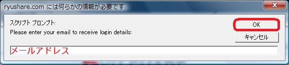 次に、メールアドレス入力画面が出ますので、空欄にメールアドレスを入力して、赤マル部分「OK」をクリックしてください。